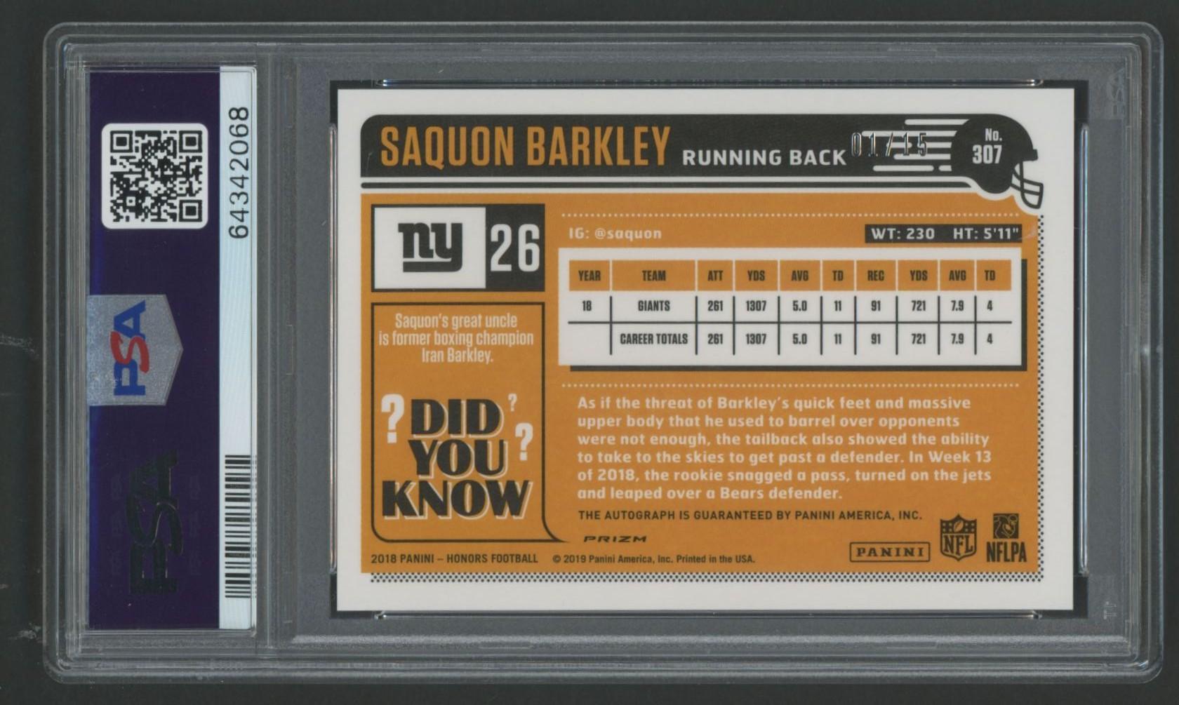 Saquon Barkley 2018 Classics Significant Signatures Red #307 #1/15 RC (PSA 9 | Auto 10)