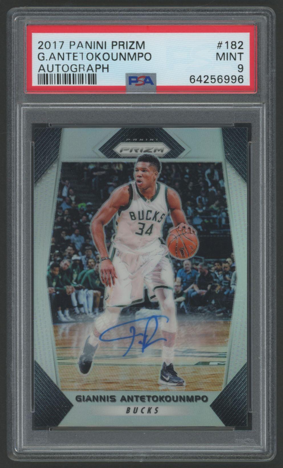 Giannis Antetokounmpo 2017 Panini Prizm Autograph #182 (PSA 9)