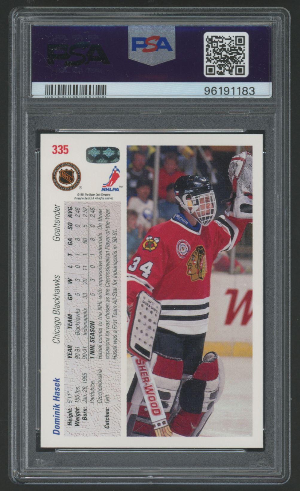 Dominik Hasek Signed 1991 Upper Deck #335 (PSA 8 | Auto 10)