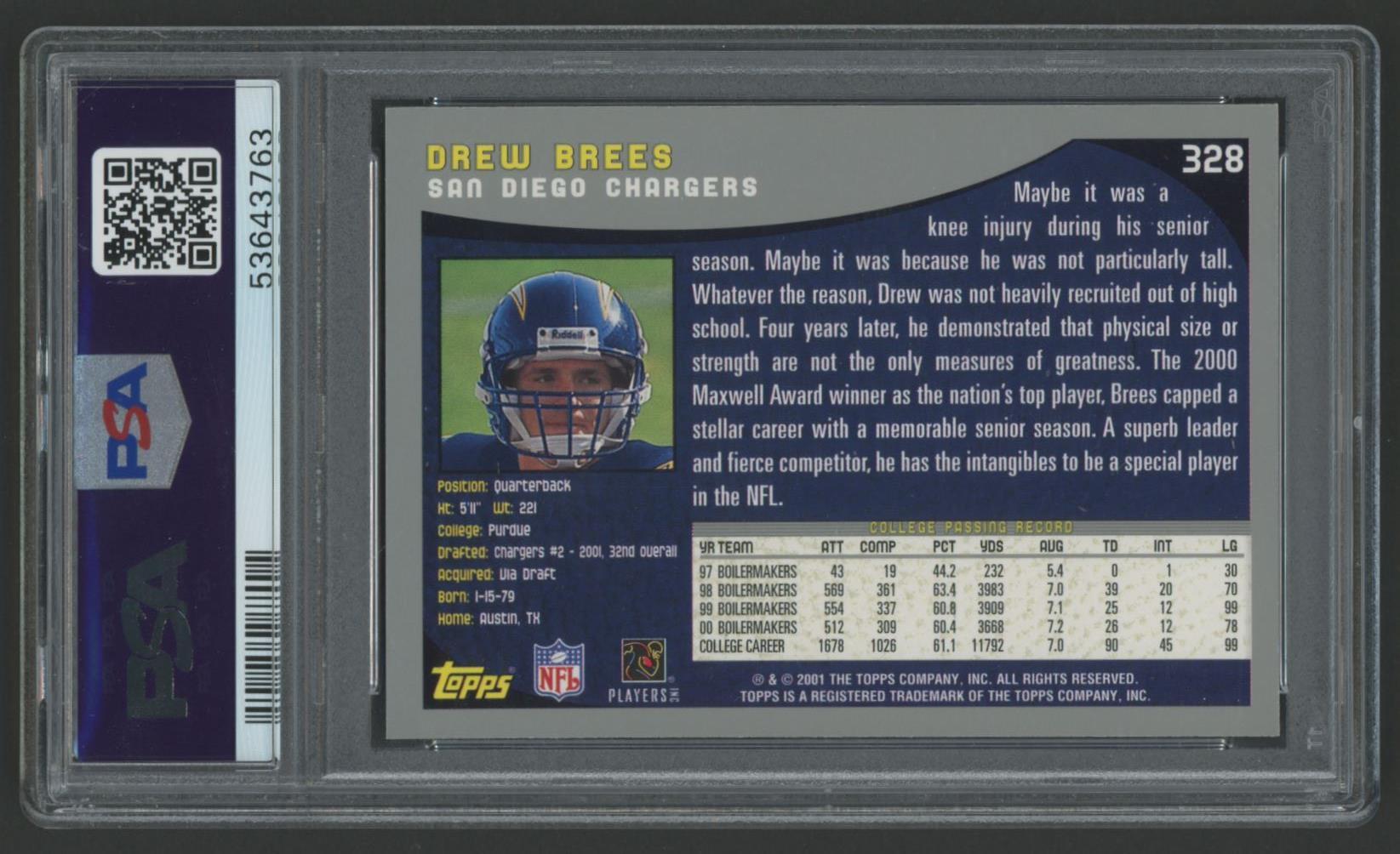 Drew Brees 2001 Topps Collection #328 (PSA 9)