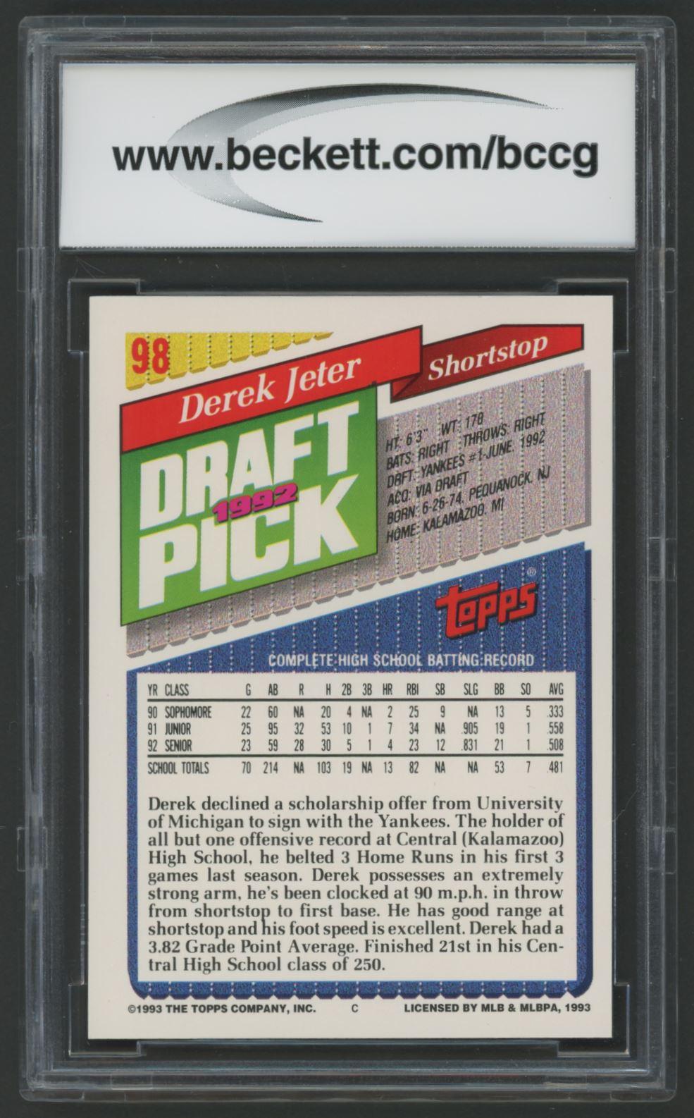 Derek Jeter 1993 Topps Gold #98 RC (BCCG 9)