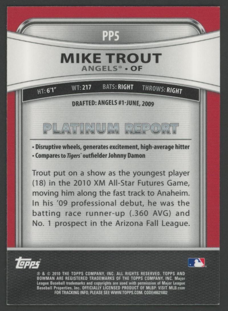 Mike Trout 2010 Bowman Platinum Prospects #PP5 RC