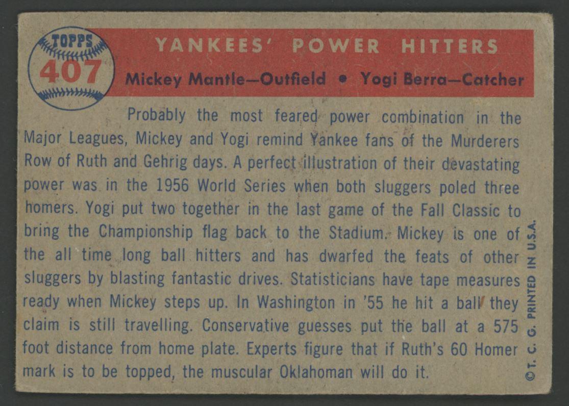 Mickey Mantle / Yogi Berra 1957 Topps #407 Yankees Power Hitters