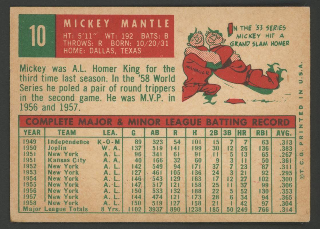 Mickey Mantle 1959 Topps #10