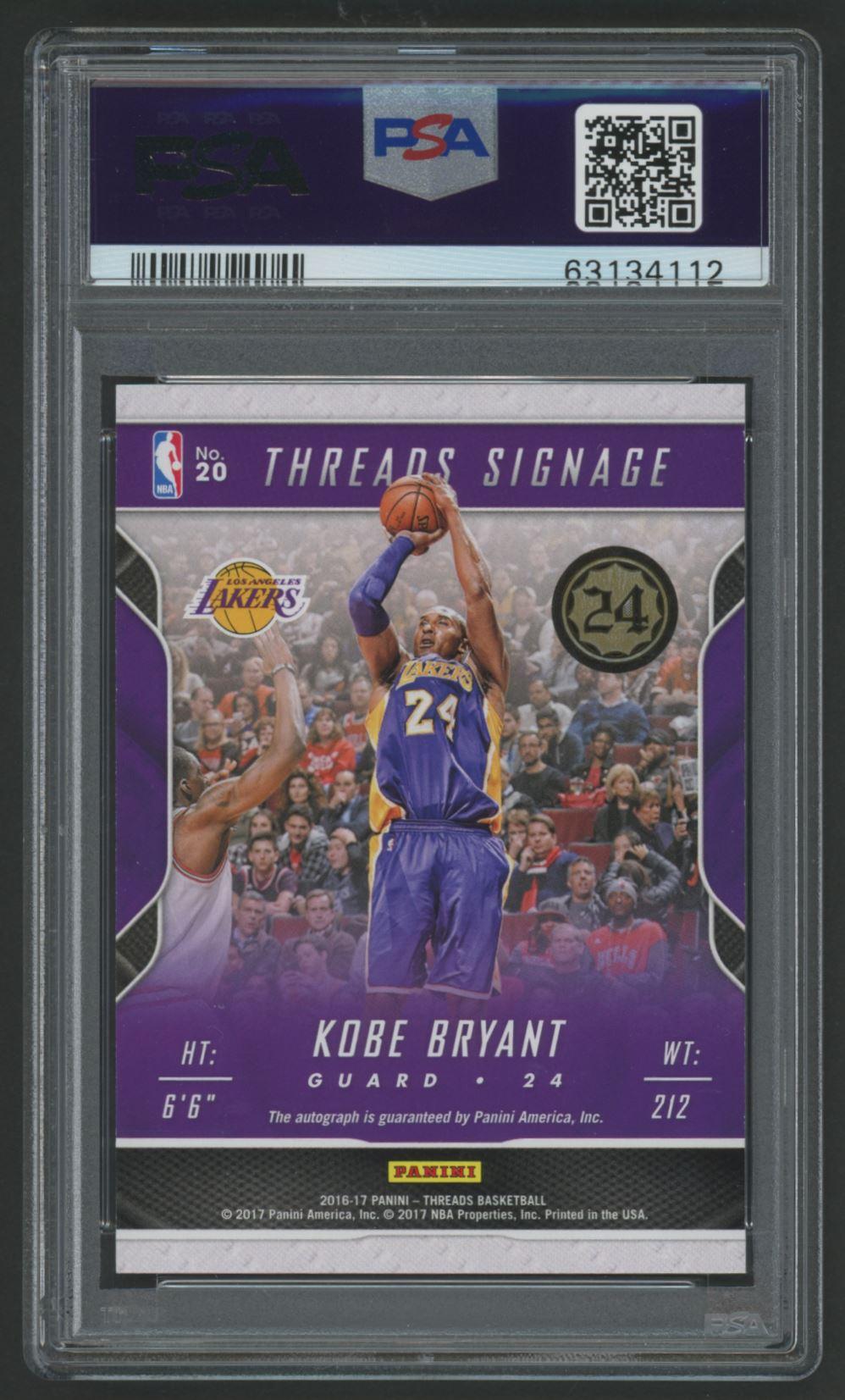 Kobe Bryant 2016-17 Panini Threads Signage #20 #37/99 (PSA 9)