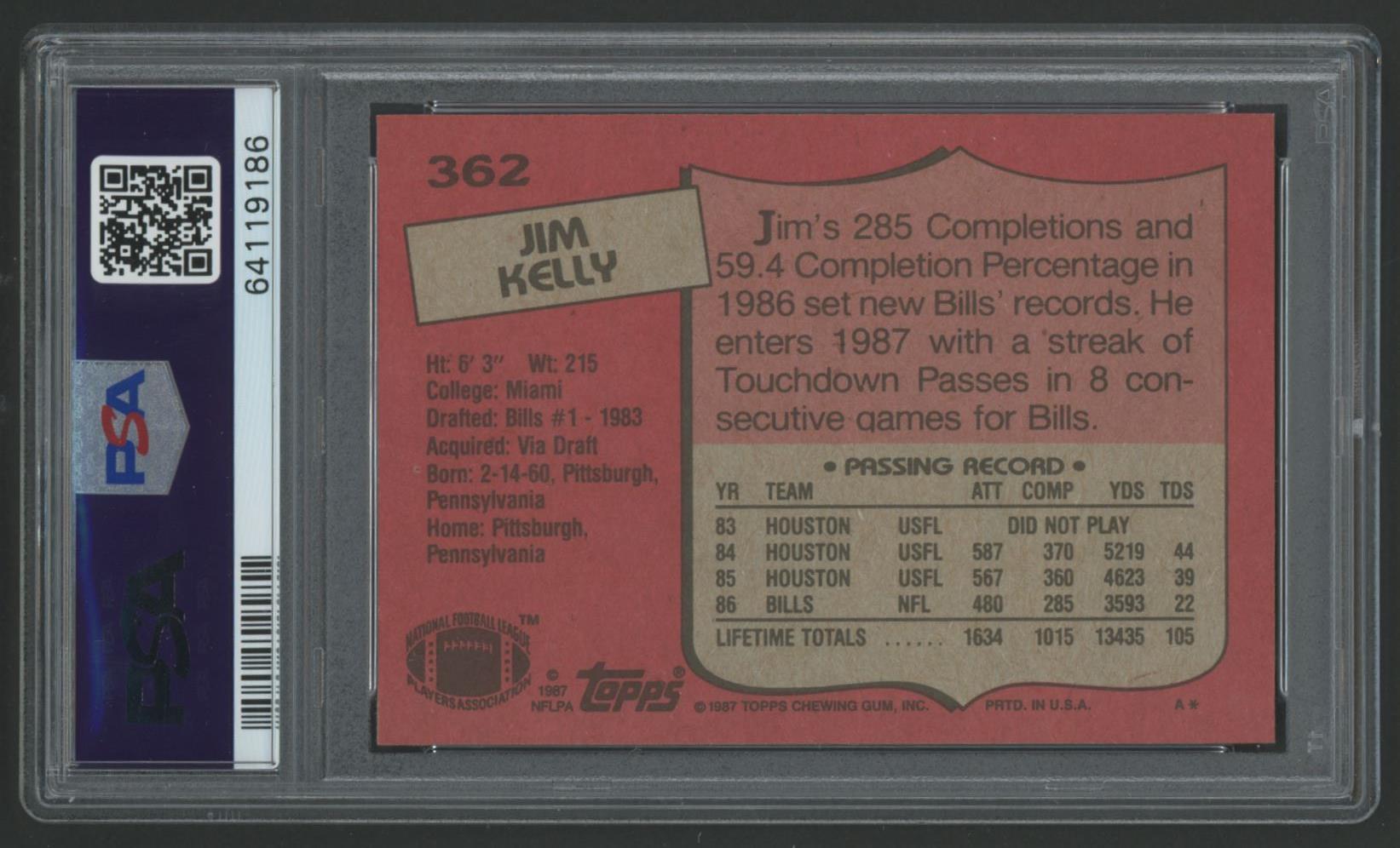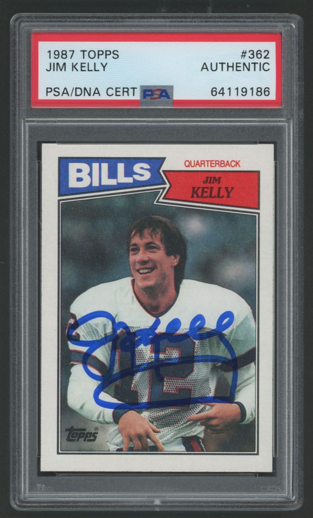 Jim Kelly Signed 1987 Topps #362 RC (PSA)