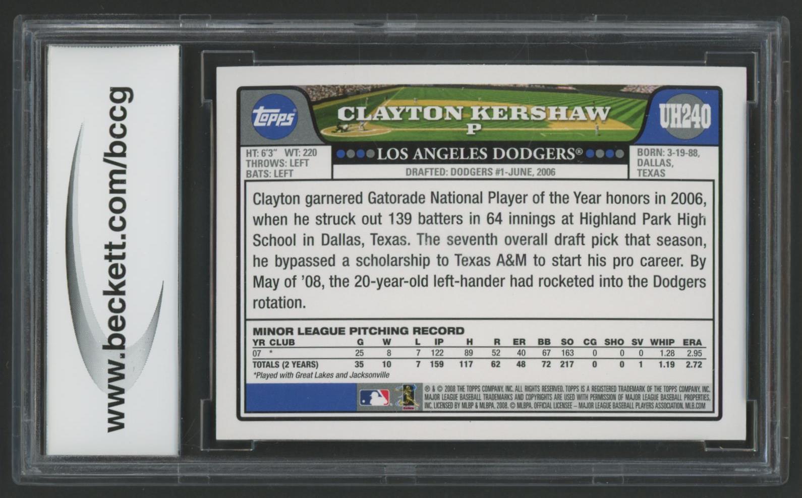 Clayton Kershaw 2008 Topps Update #UH240 RC (BCCG 10)