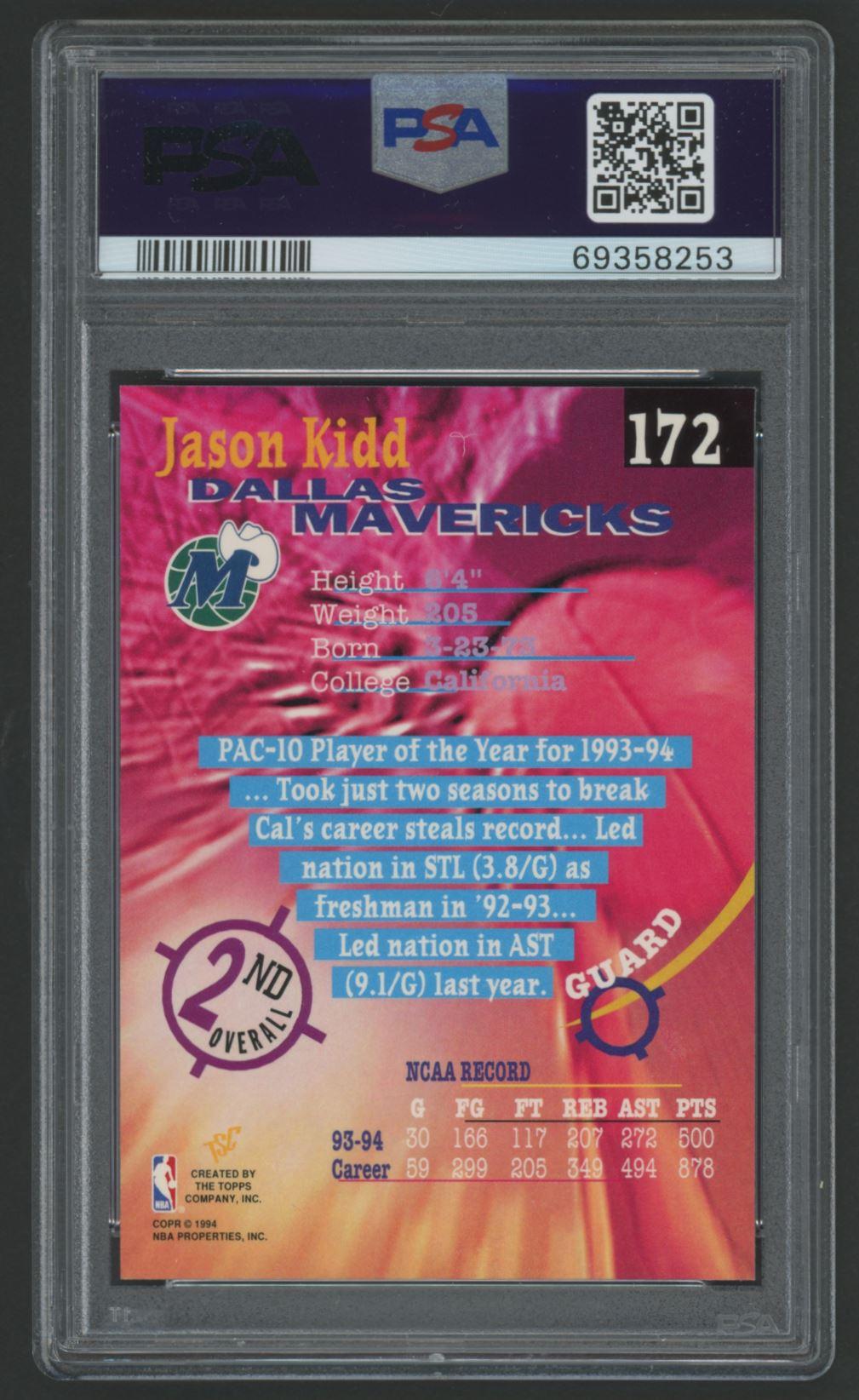 Jason Kidd 1994-95 Stadium Club #172 RC (PSA 10)