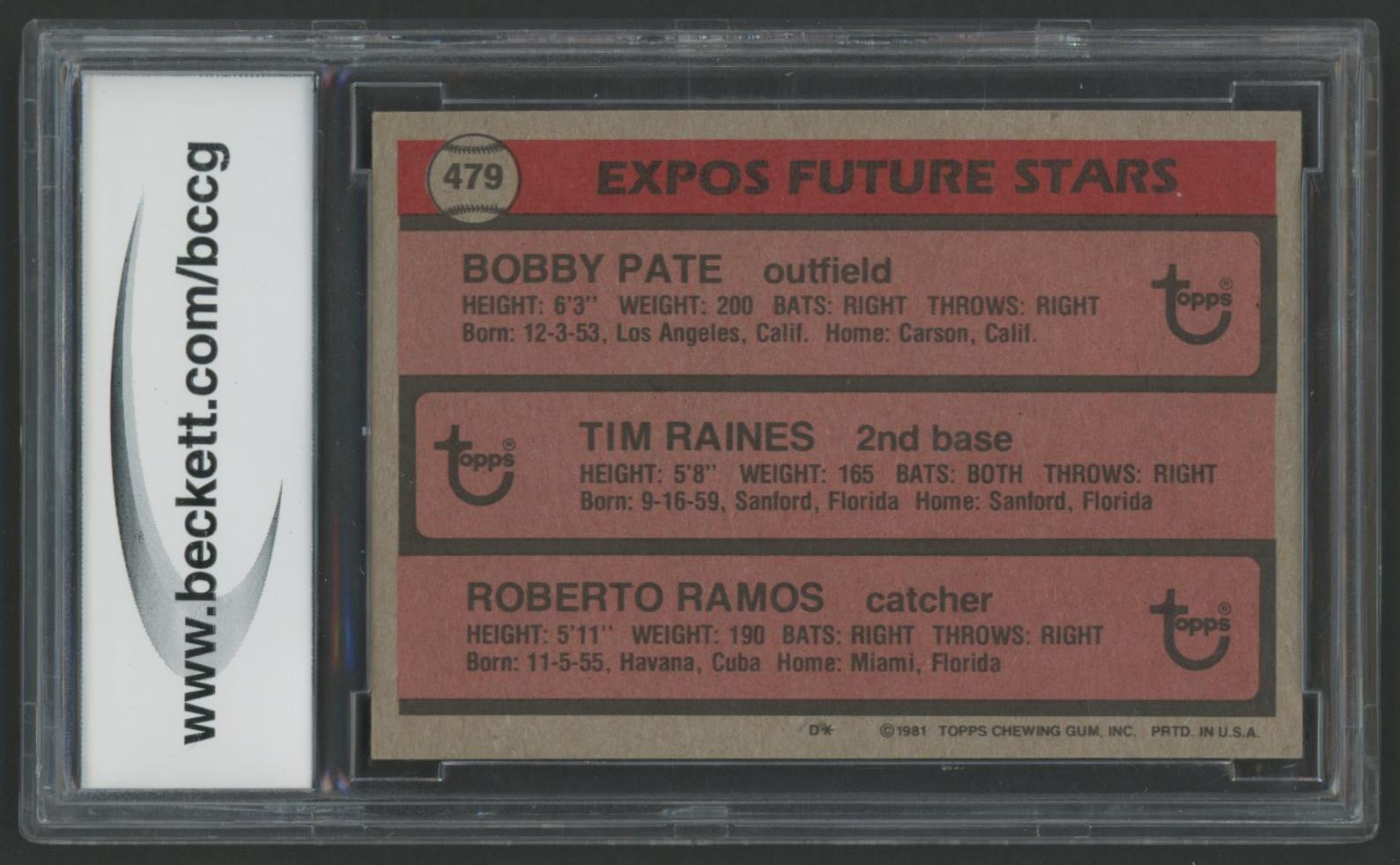Tim Raines RC / Roberto Ramos RC / Bobby Pate RC 1981 Topps #479 (BCCG 10)