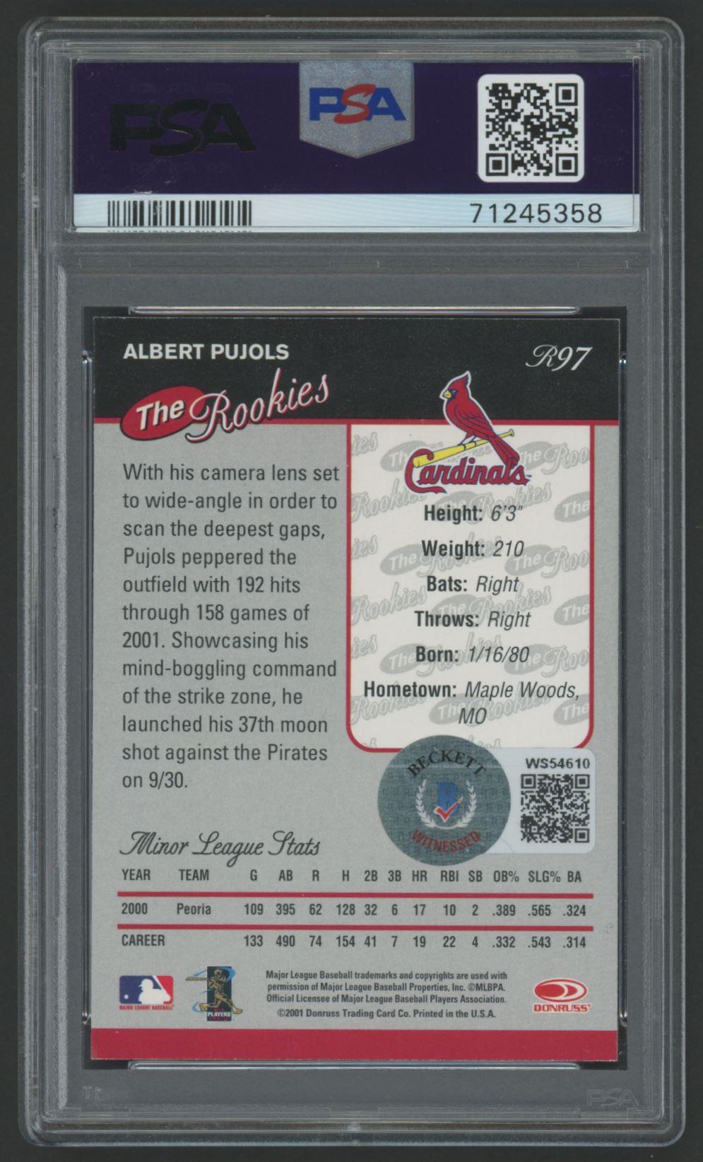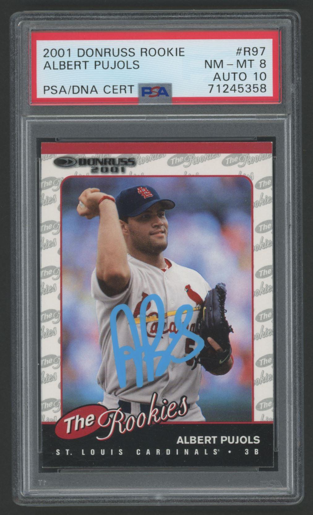 Albert Pujols Signed 2001 Donruss Rookies #R97 UPD (PSA 8 | Autograph Graded 10)