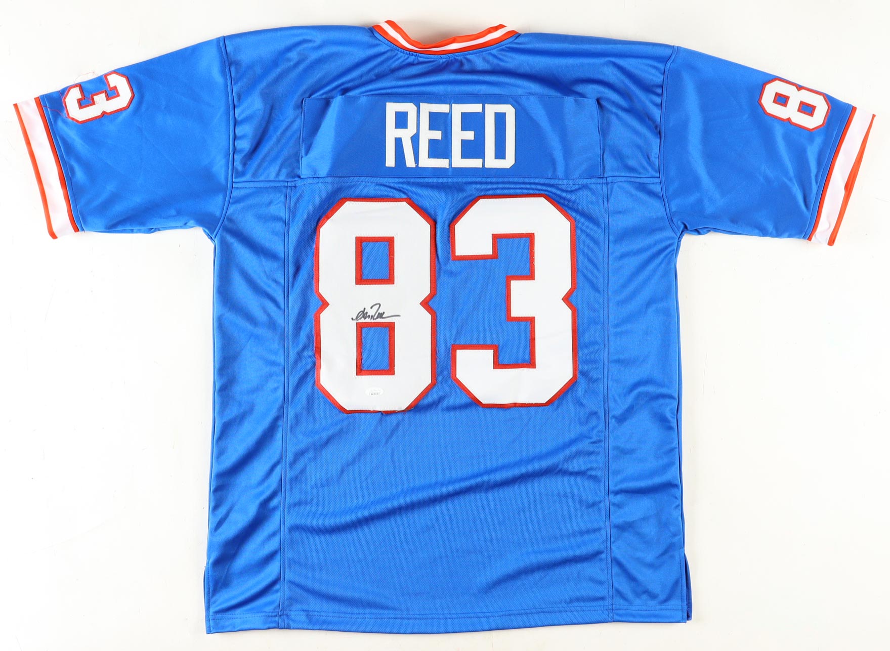 Custom jersey with everything sewn on, size XL. Hand-signed by Andre Reed (HOF).