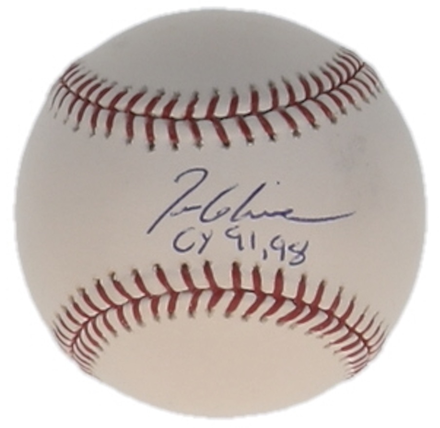 Tom Glavine Signed OML Baseball Inscribed "Cy 91, 98" (PSA)