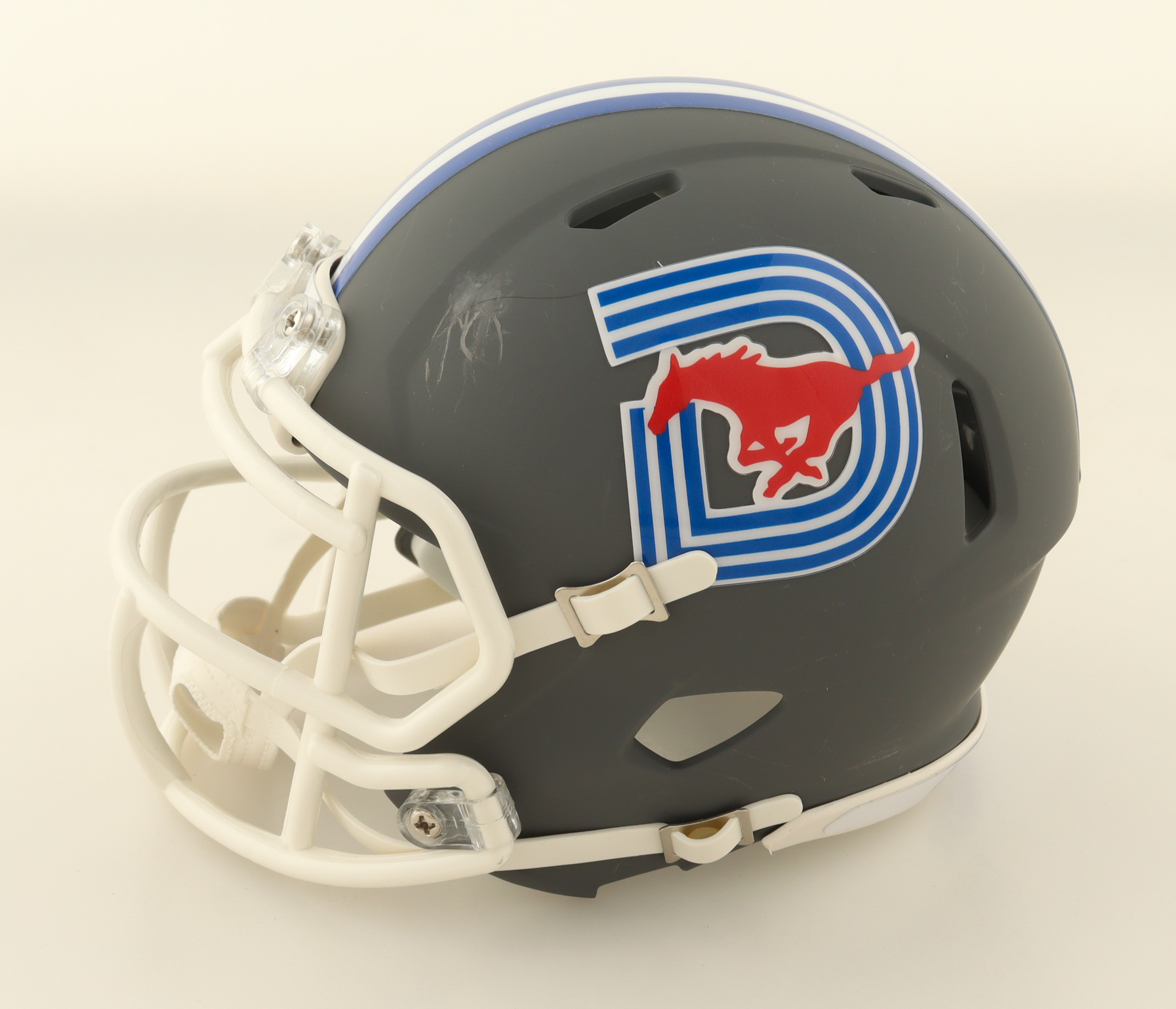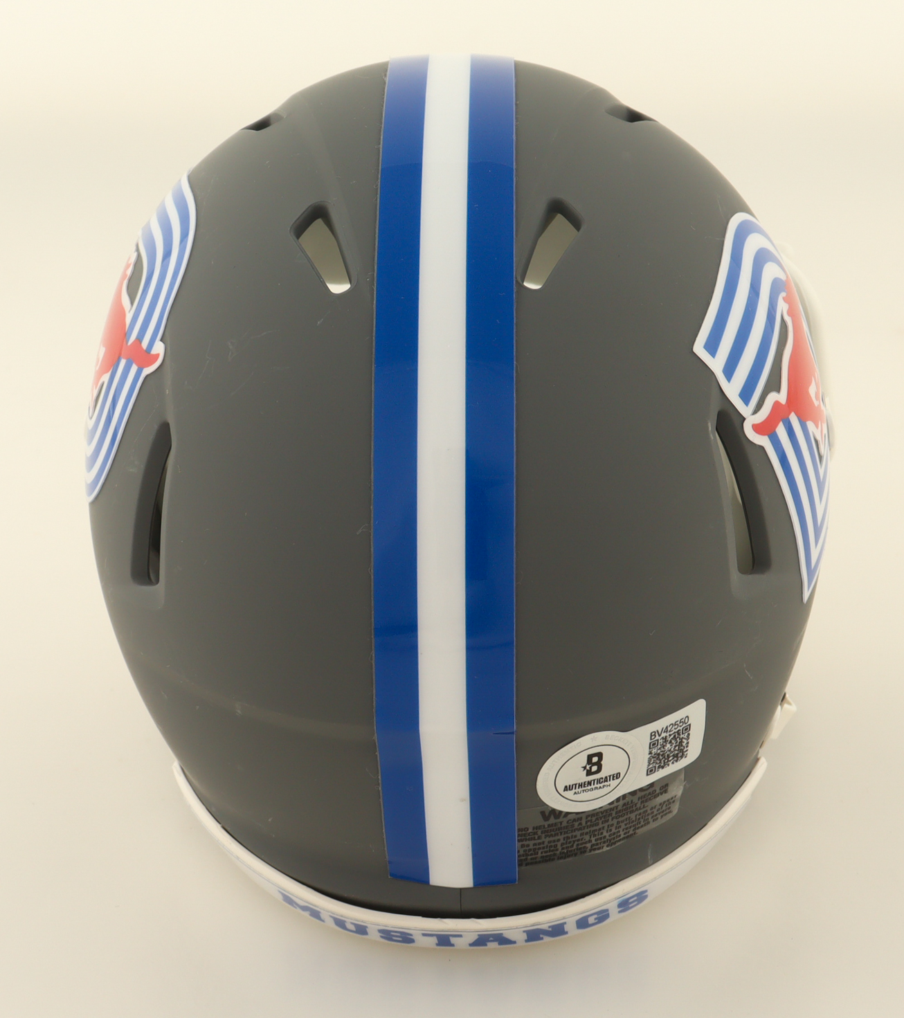 Rhett Lashlee Signed SMU Mustangs Slate Alternate Speed Mini Helmet (Beckett)