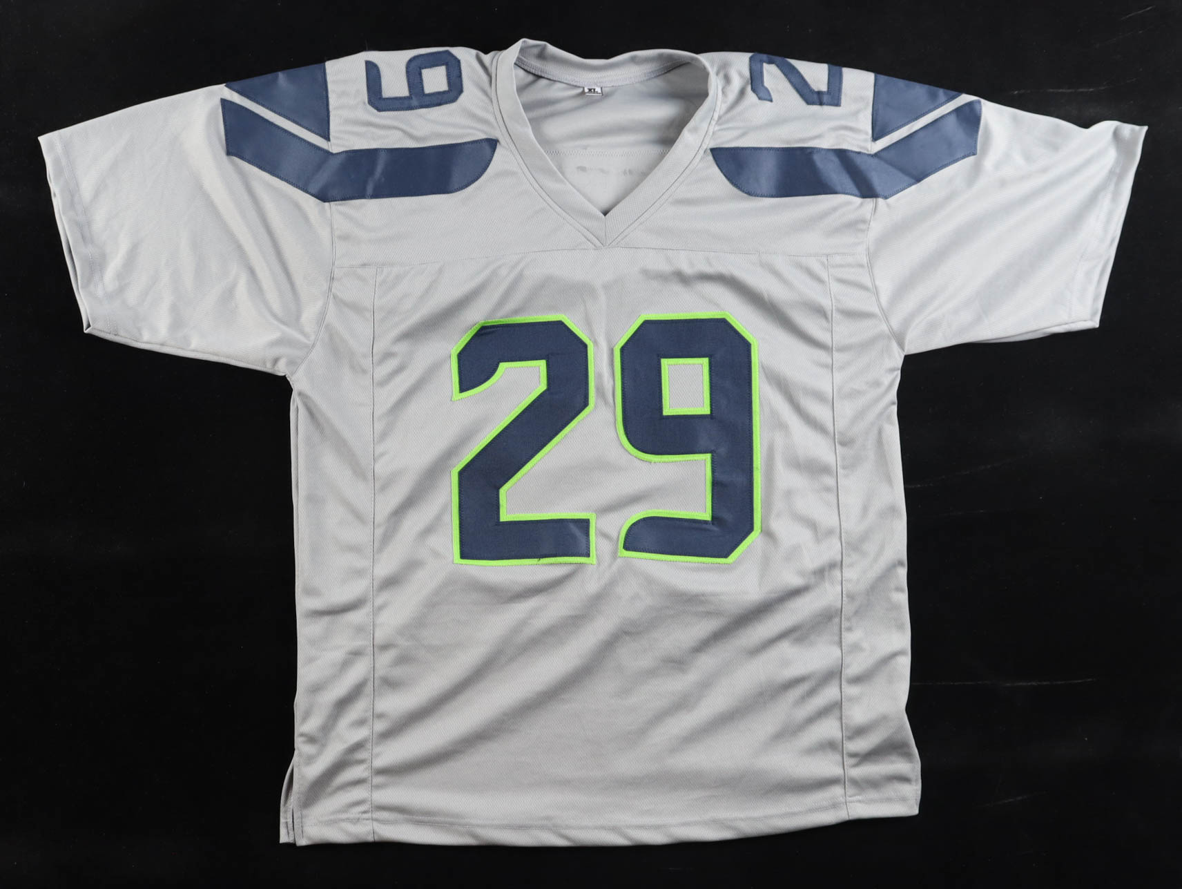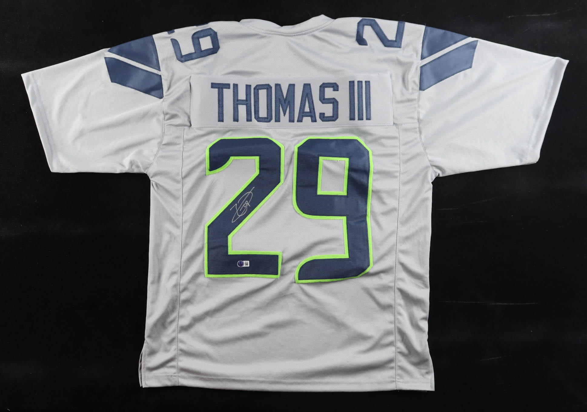 Custom jersey with everything sewn on, size XL. Hand-signed by Earl Thomas III.
