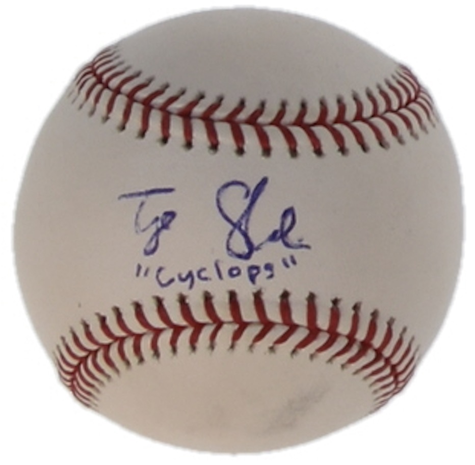 Rawlings Official Major League baseball. Hand-signed and inscribed by Tye Sheridan.