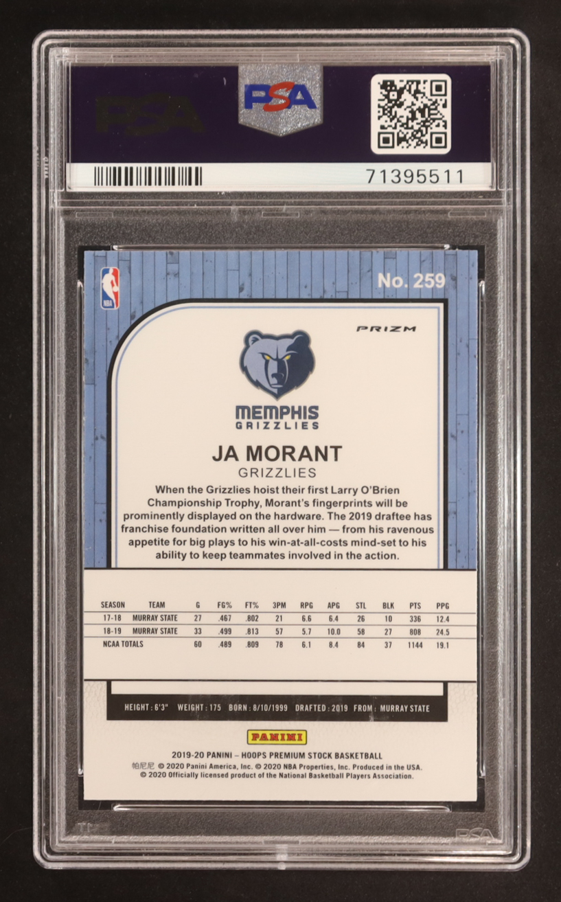 Ja Morant 2019-20 Hoops Premium Stock Prizms Blue #259 RC (PSA 10)