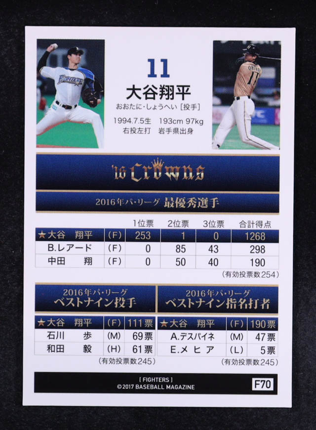 Shohei Ohtani 2017 BBM Nippon-Ham Fighters #F70 RC