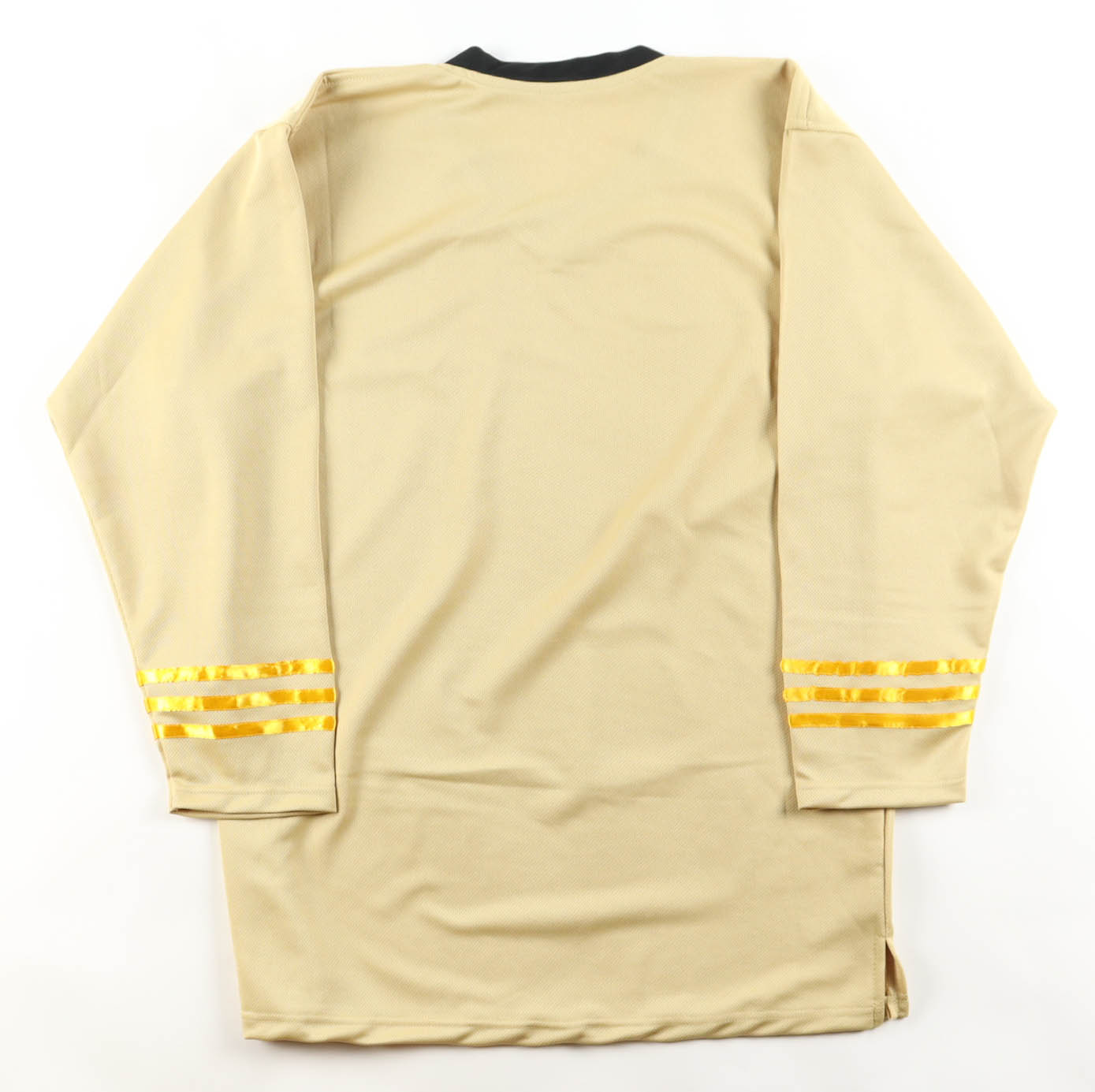 Custom Star Trek uniform. Everything sewn on, size XL. Jersey has been hand-signed by William Shatner (Captain James T. Kirk). Please note, there is a stray ink mark on the front of the jersey. See photos regarding the condition of the item.