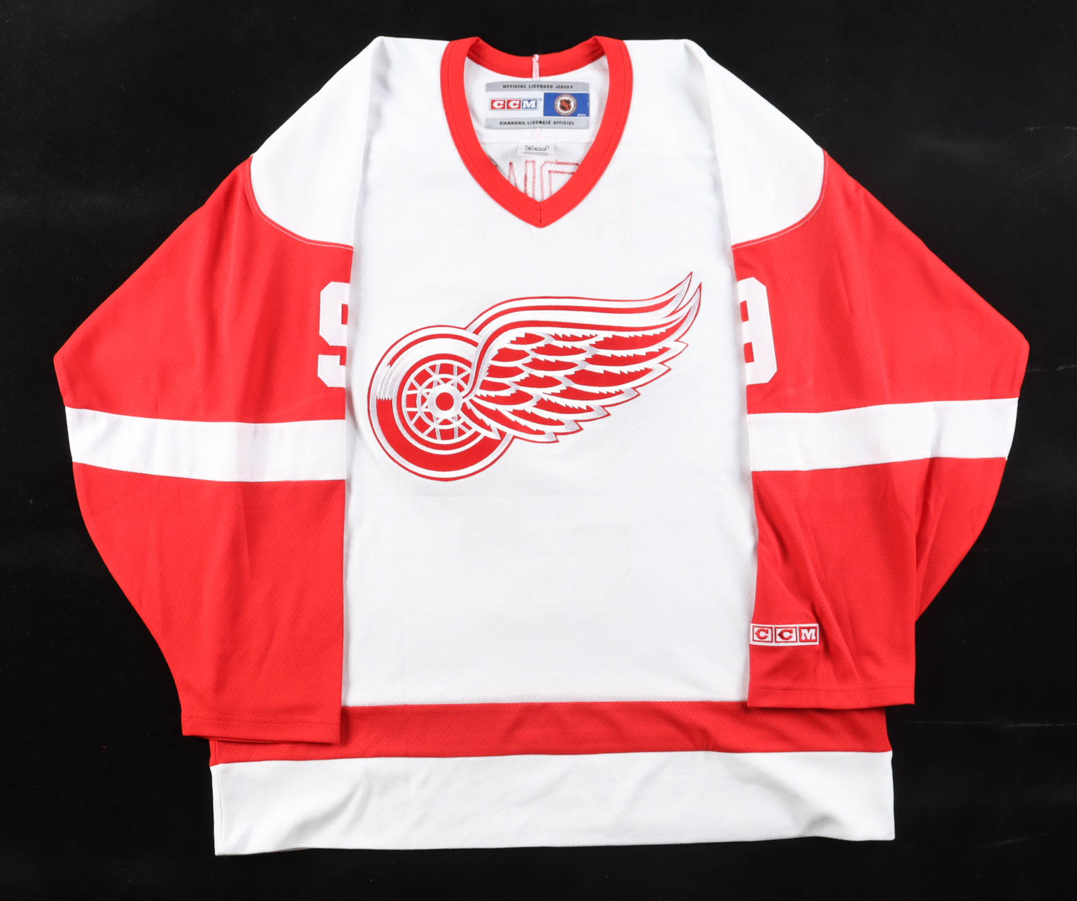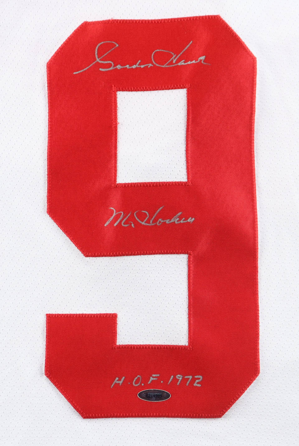 CCM jersey. Everything sewn on, size XL. Hand-signed and inscribed by Gordie Howe (D. 2016, Detroit Red Wings, HOF).