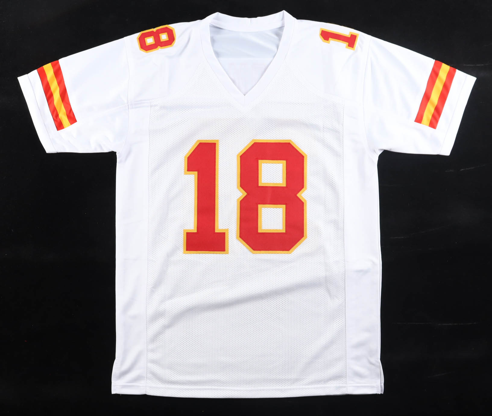 Custom jersey with everything sewn on, size XL. Has been hand-signed by Emmitt Thomas. Please note, there is a stray ink mark on the reverse number. See photos regarding the condition of the item.