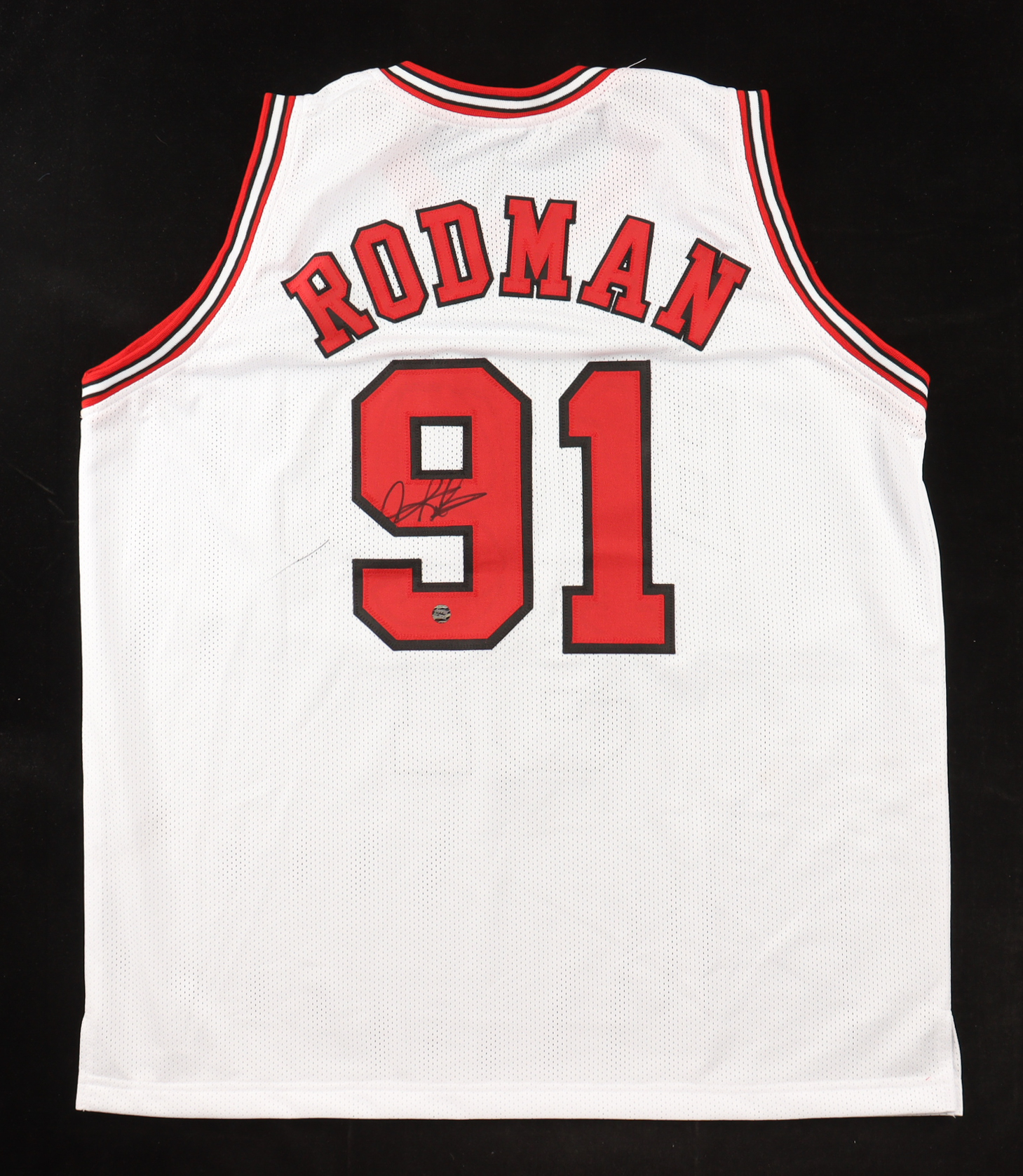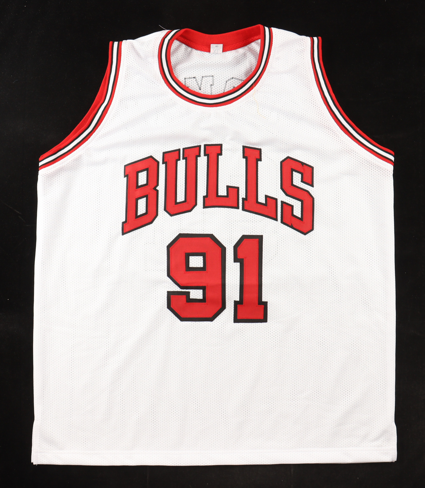 Custom jersey with everything sewn on, size XL. Has been hand-signed by Dennis Rodman (HOF).