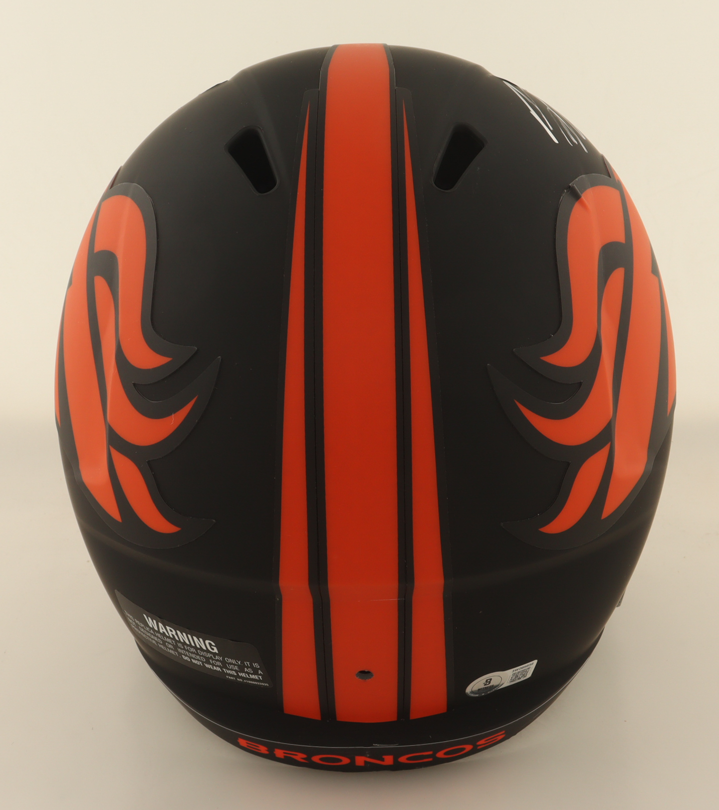 Riddell Denver Broncos full-size replica eclipse alternate speed helmet. Hand-signed by Javonte Williams.