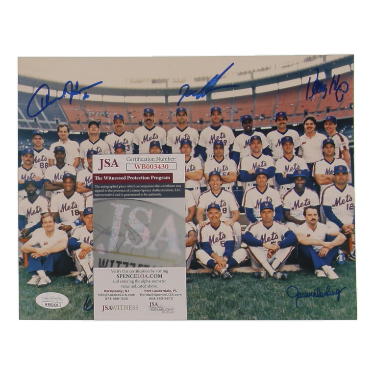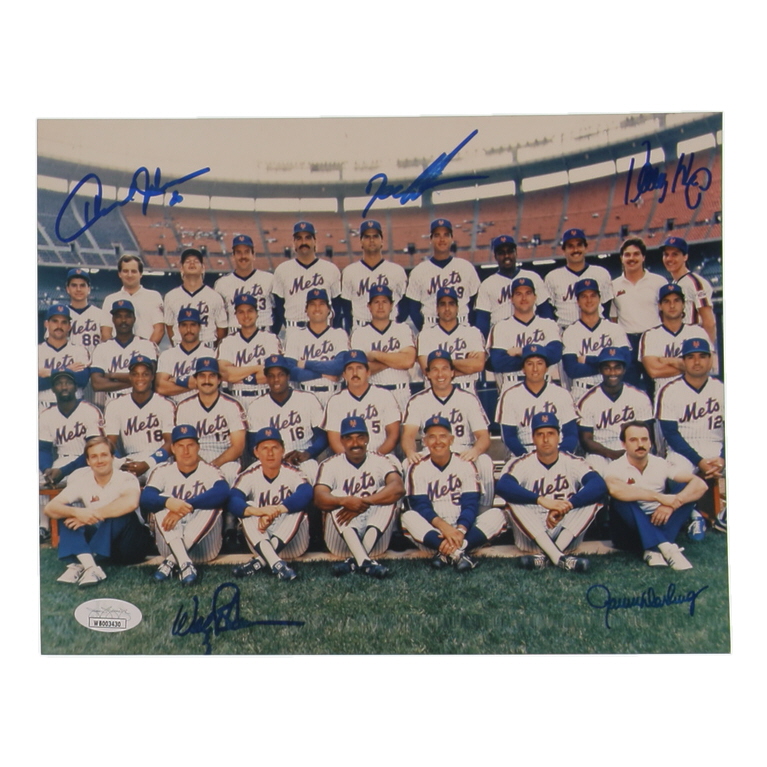 Photo measures 8” x 10” in size and has been hand-signed by Dwight Gooden, Howard Johnson, Ron Darling, Wally Backman, and Danny Heep (New York Mets). Please note, Gooden's signature is smudged.