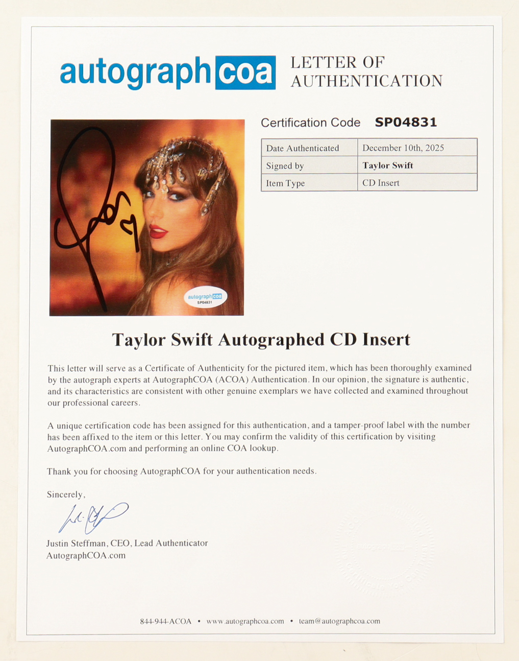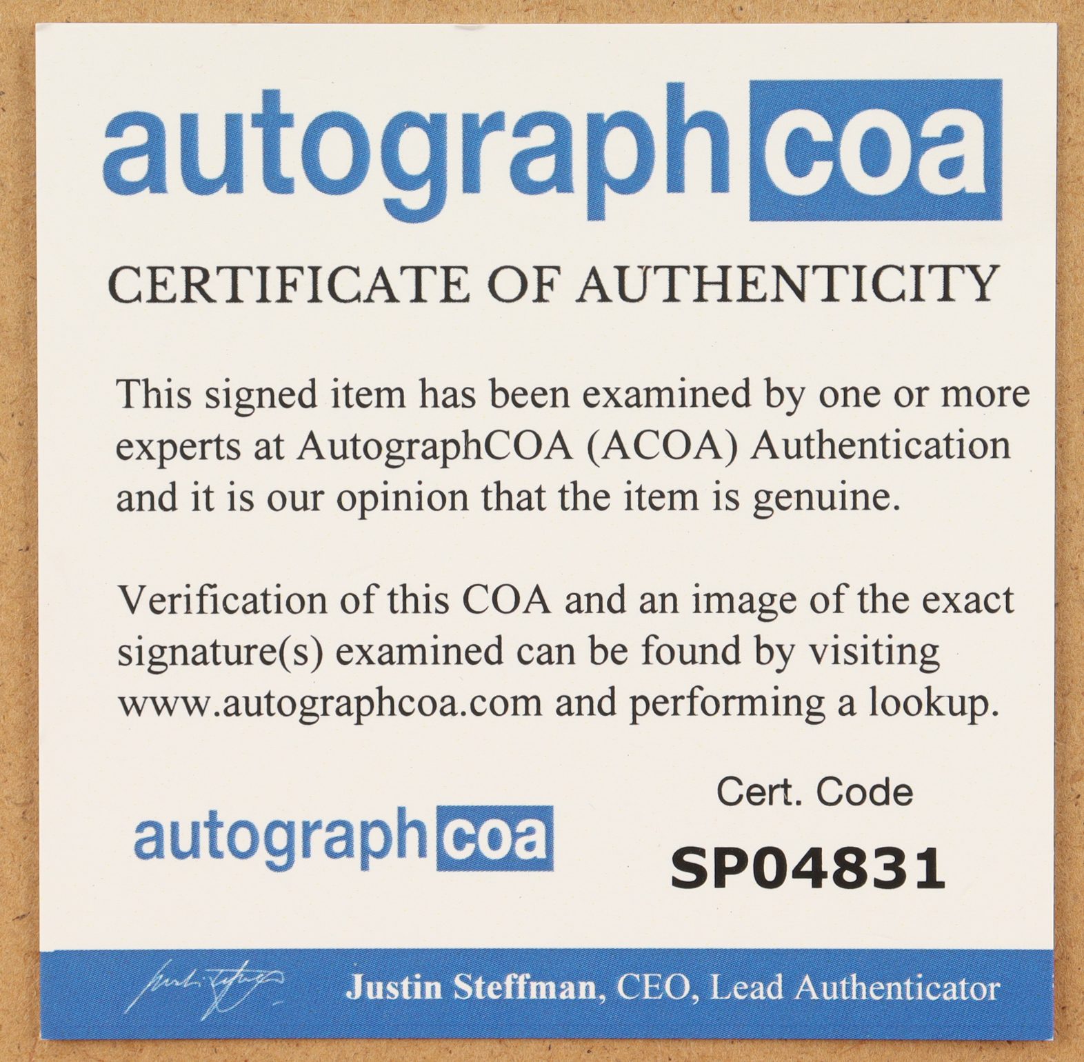Authentication: AutographCOA LOA