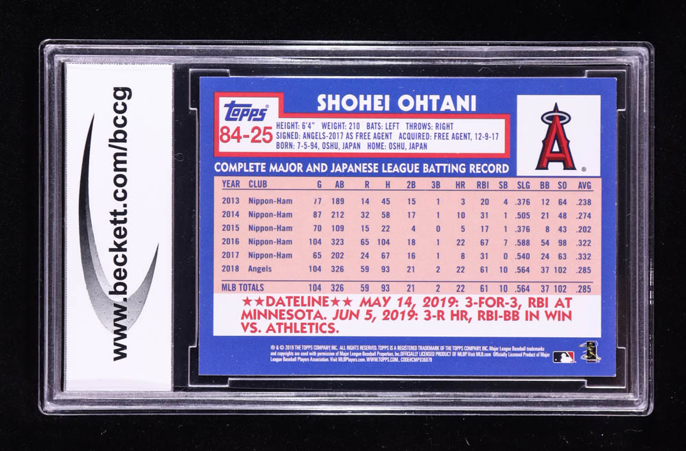 Shohei Ohtani 2019 Topps Update 84 Topps #8425 (BCCG 10)