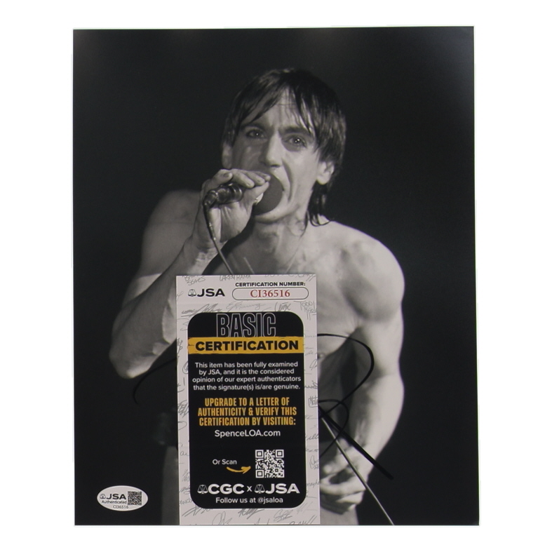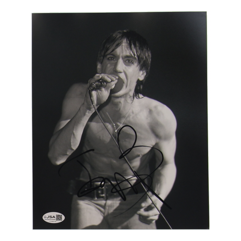 Photo measures 8" x 10" in size. Hand-signed by Iggy Pop.