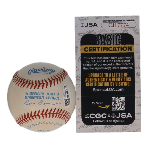 Rawlings Official American League baseball has been hand-signed by Bo Jackson (Kansas City Royals). Please note, the baseball is stained and naturally toned.