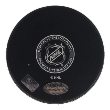 Detroit Red Wings Logo Hockey Puck. Hand-signed and inscribed by Chris Chelios (HOF).
