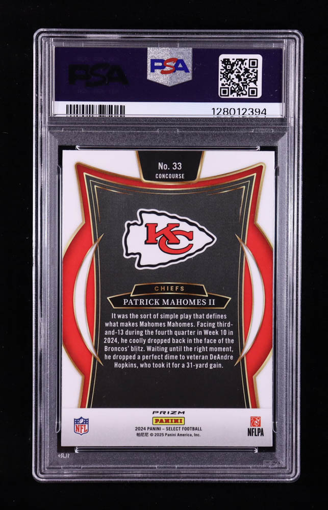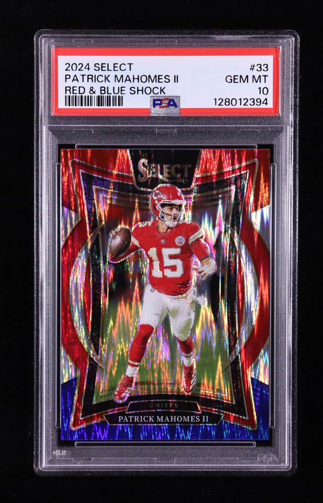 Patrick Mahomes II 2024 Select Prizm Red and Blue Shock #33 (PSA 10)