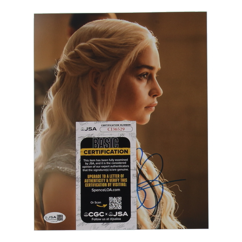 Photo measures 8" x 10" in size and has been hand-signed by Emilia Clarke.