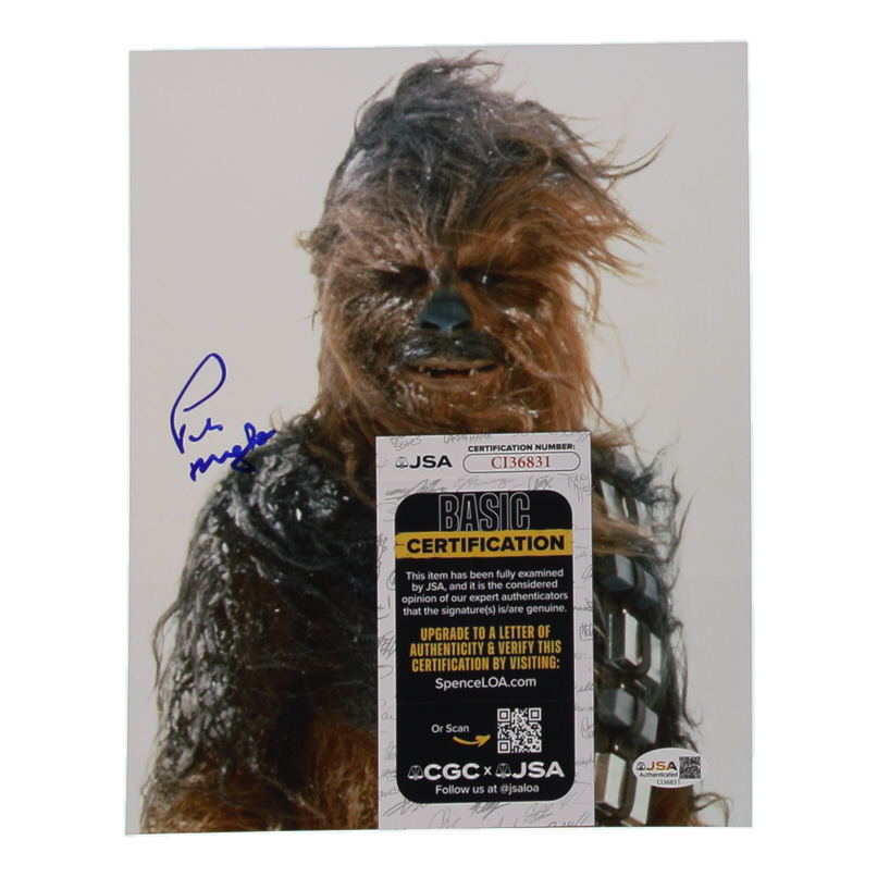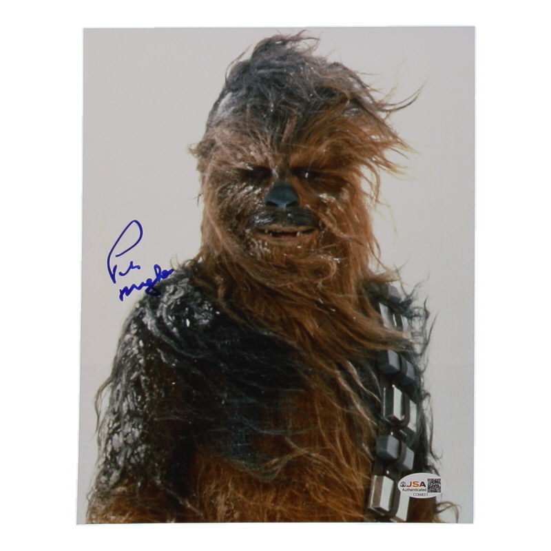 Photo measures 8" x 10" in size and has been hand-signed by Peter Mayhew (D. 2019).