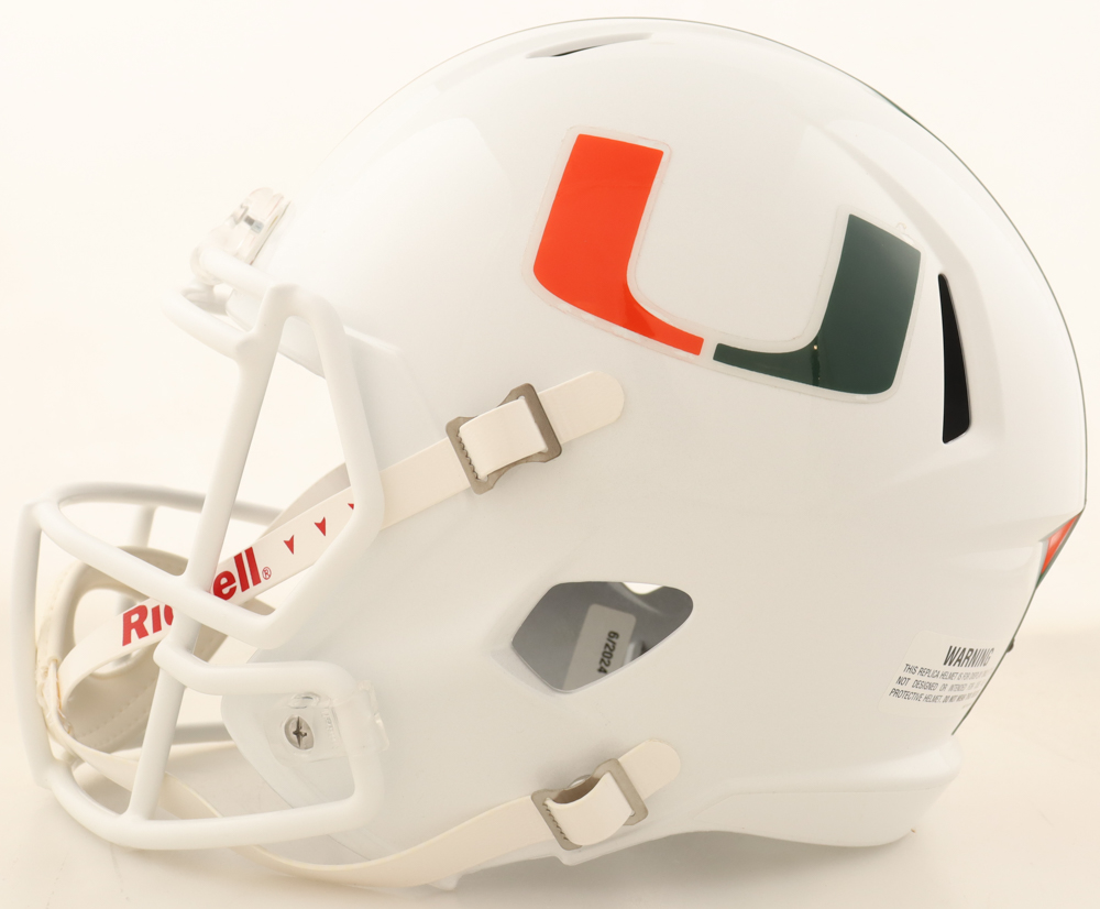 Riddell Miami Hurricanes full-size replica Speed helmet has been hand-signed by Vinny Testaverde.