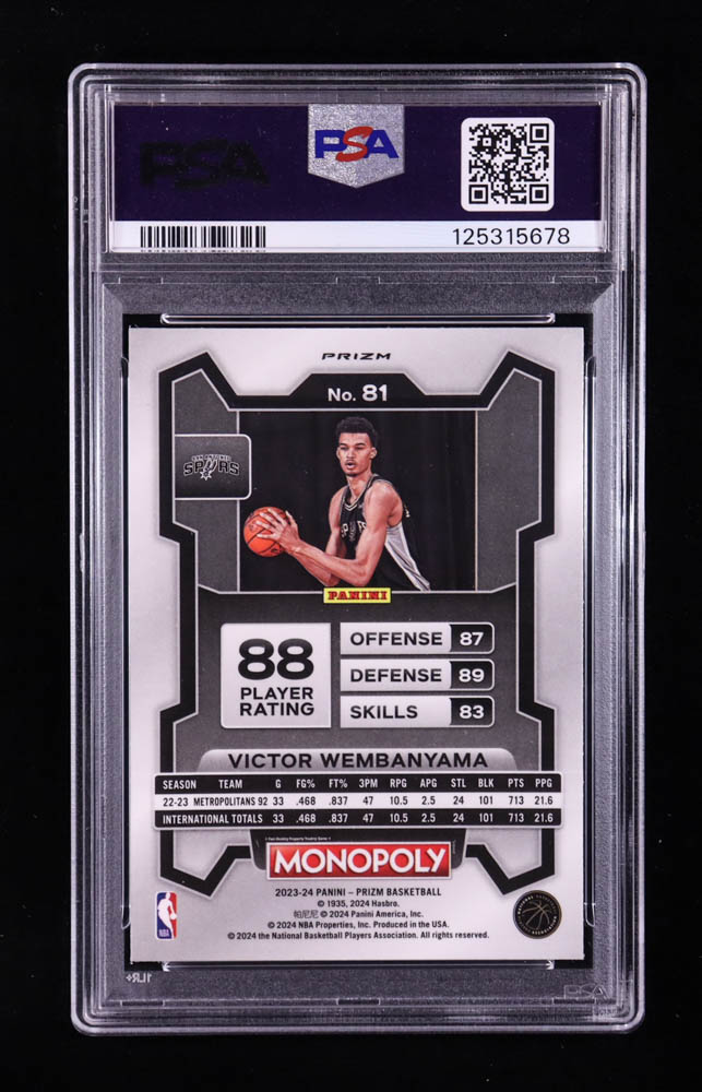 Victor Wembanyama 2023-24 Panini Prizm Monopoly Silver #81 RC (PSA 9)