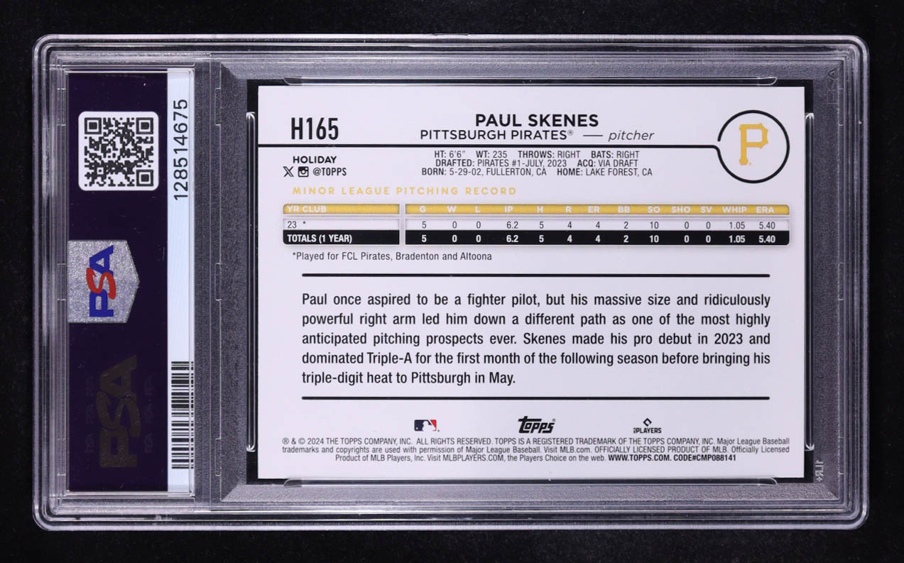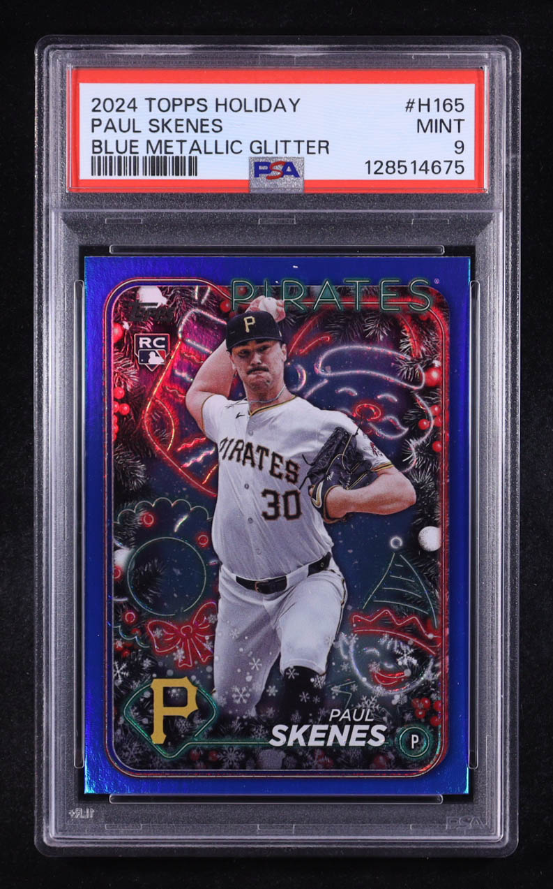 Paul Skenes 2024 Topps Holiday Metallic Blue Glitter #H165 RC (PSA 9)