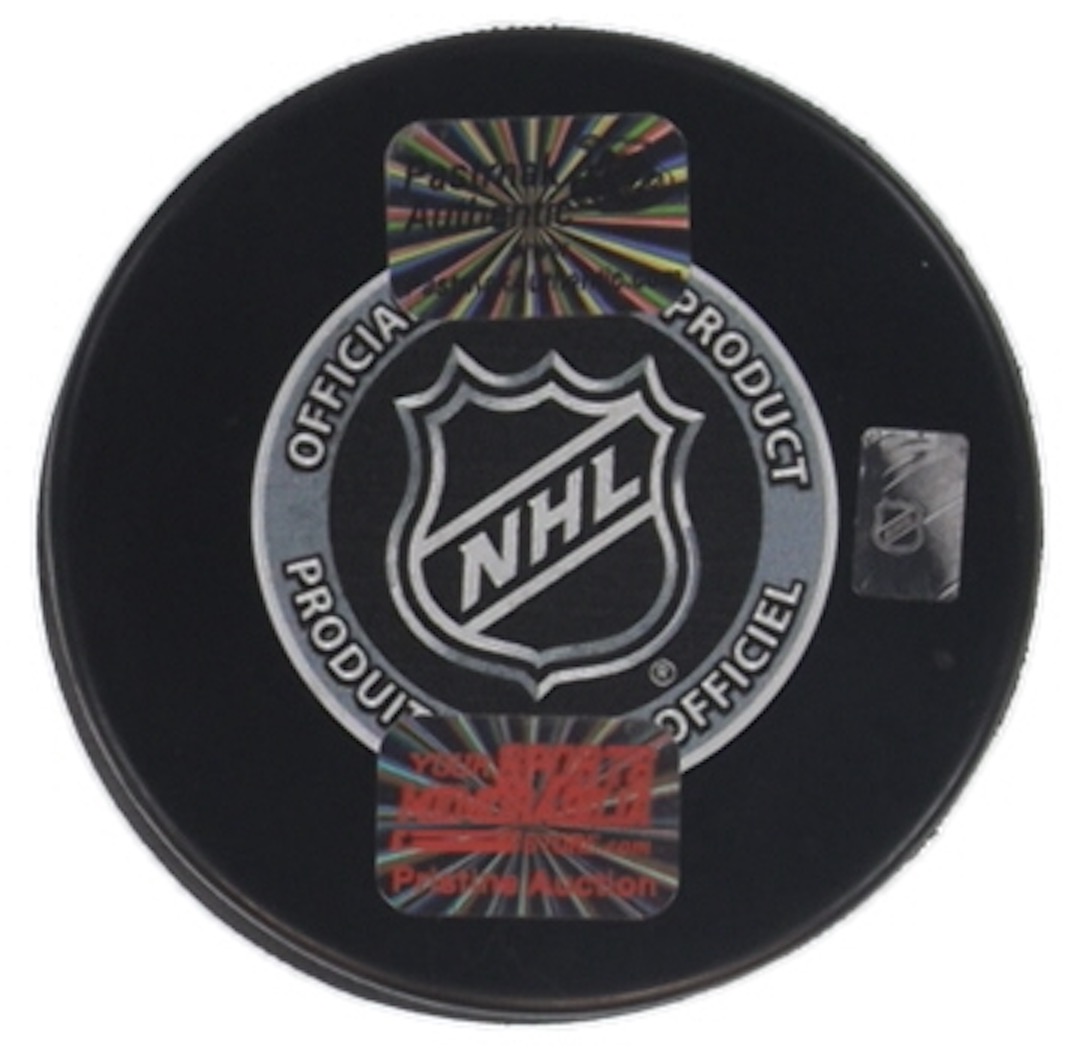 Commemorative hockey puck has been hand-signed by David Pastrnak (Boston Bruins).