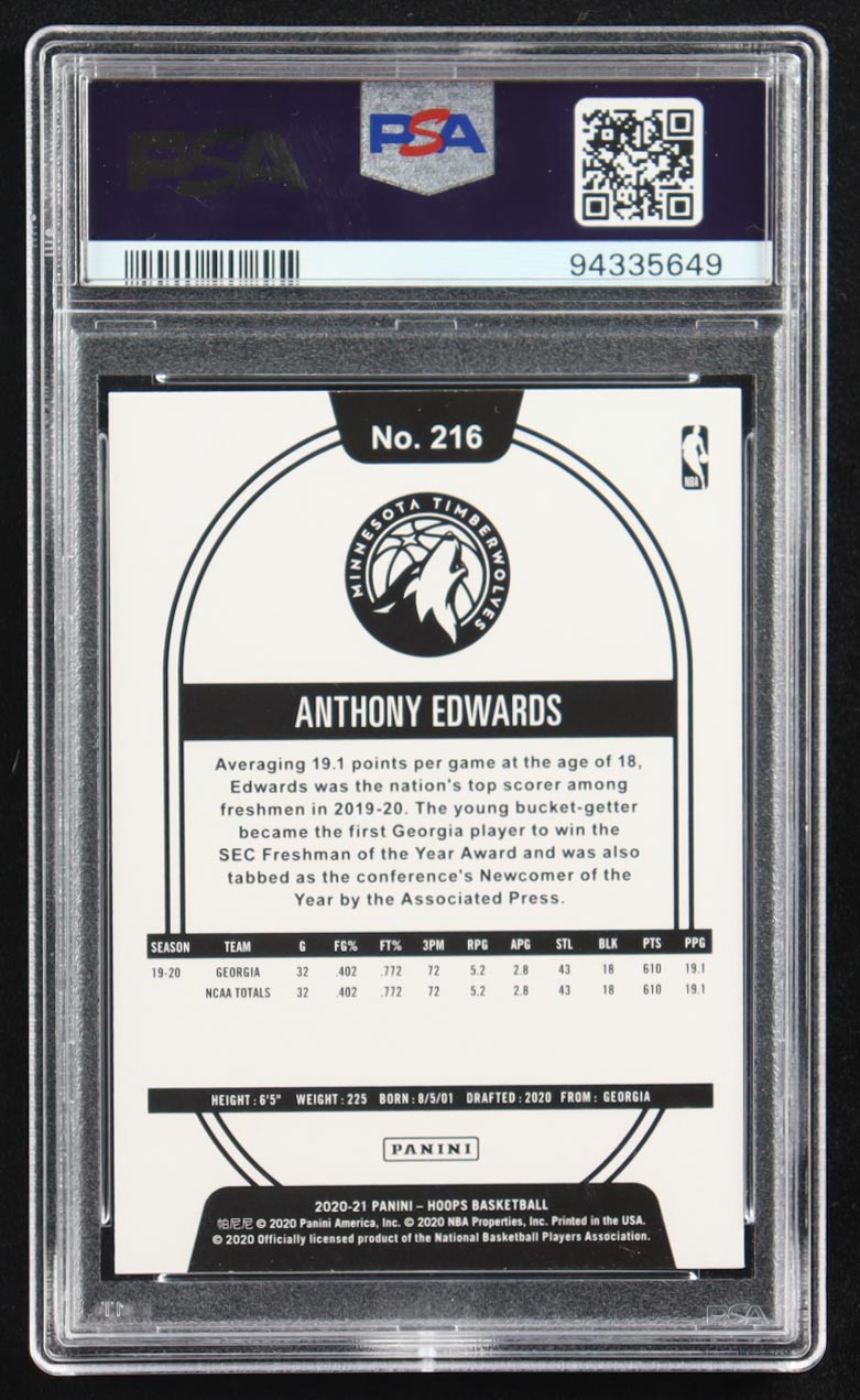 Anthony Edwards 2020 Panini NBA Hoops #216 RC (PSA 10)