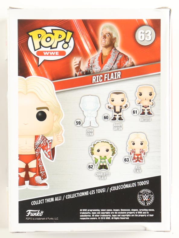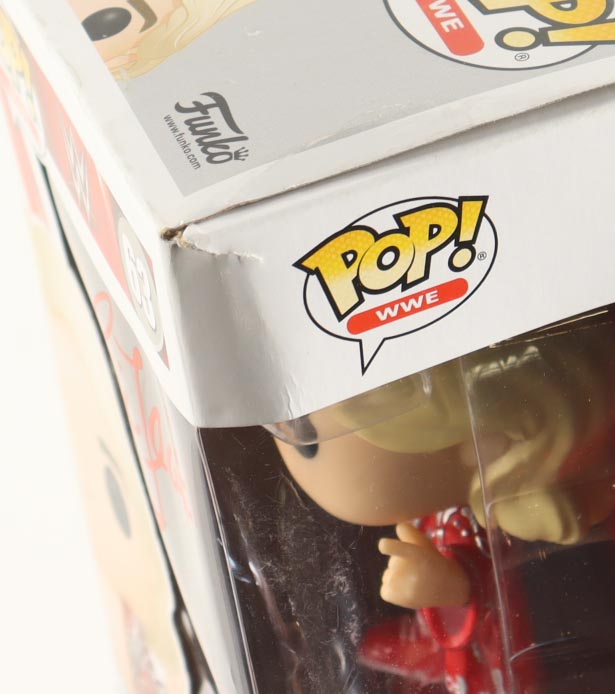 Funko Pop! vinyl figure measures approximately 4" in height and has been hand-signed on the packaging by Ric Flair (HOF). Please note, the corners are creased and the window is scuffed.