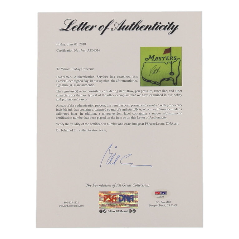 Patrick Reed Signed Masters Tournament Pin Flag (PSA)