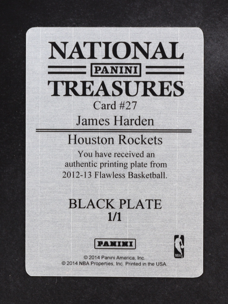 James Harden 2012-13 Panini National Treasures Printing Plates Black #27 #1/1