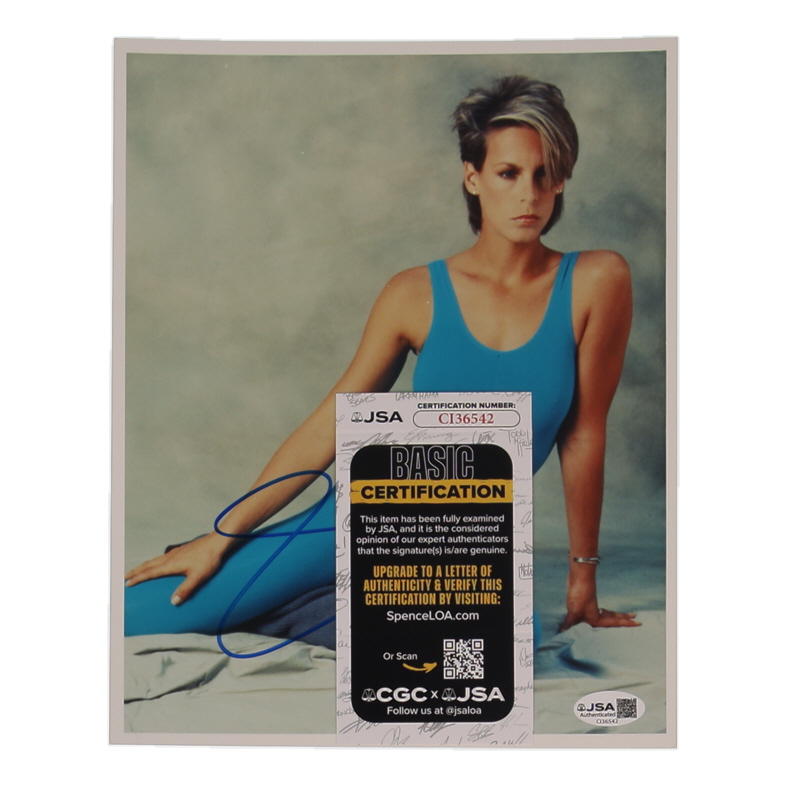 Photo measures 8" x 10" in size and has been hand-signed by Jamie Lee Curtis.