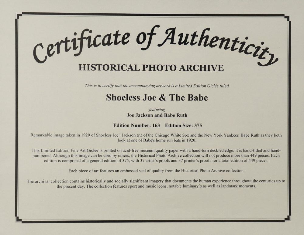 Historical Photo Archive - Joe Jackson & Babe Ruth "Shoeless Joe & The Babe" Limited Edition 10.5x15 Fine Art Giclee on Paper # 163 /375