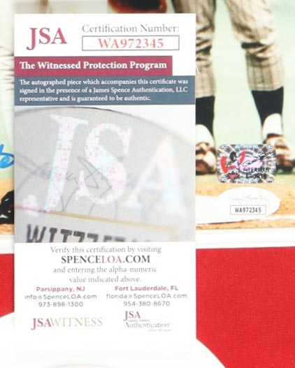 The autograph(s) includes an official James Spence Authentication (JSA) hologram and matching COA as well as an official Pete Rose hologram from Fiterman Sports Group for authenticity purposes. The signing of this item was witnessed by JSA.
