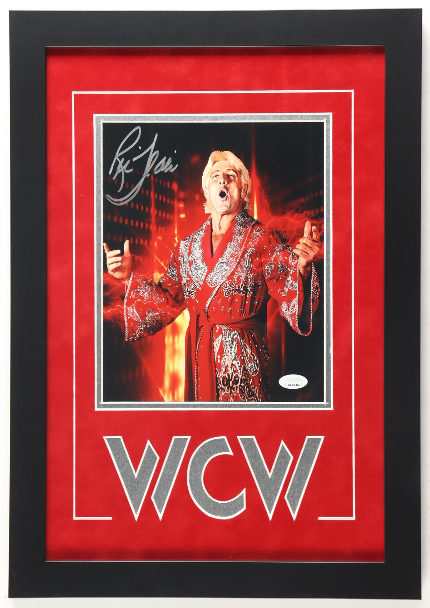 Custom frame measures approximately 14" x 20" in size and features a photo that has been hand-signed by Ric Flair (HOF).
