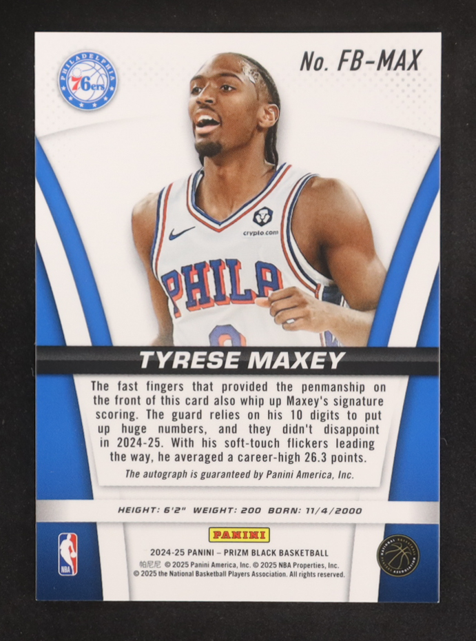 Tyrese Maxey 2024-25 Panini Prizm Black Autograph #MAX