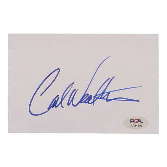 Cut measures approximately 4" x 6" in size and has been hand-signed by Carl Weathers (D. 2024).