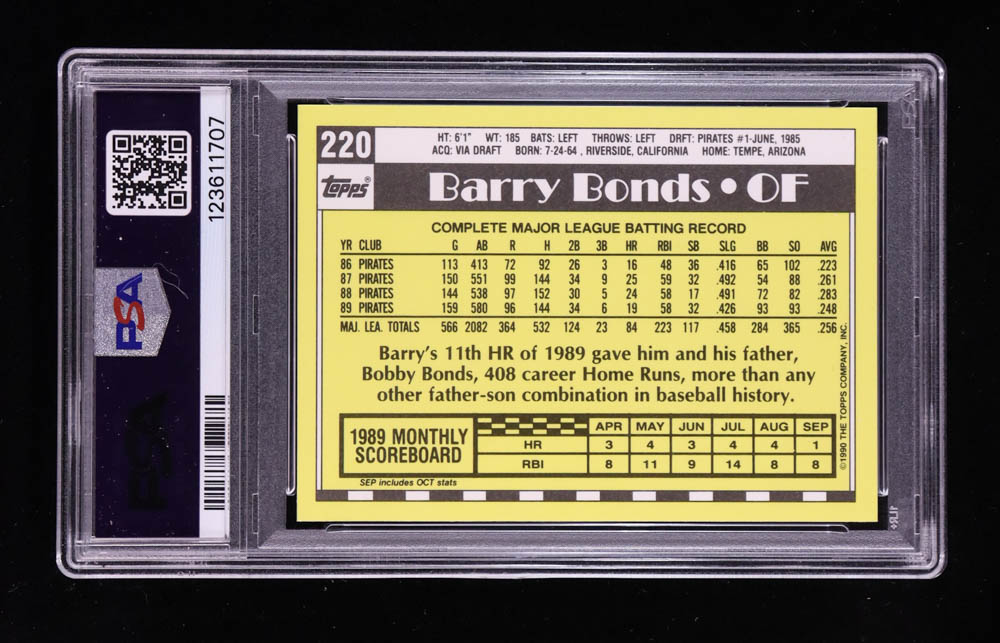 Barry Bonds 1990 Topps Tiffany #220 (PSA 9)